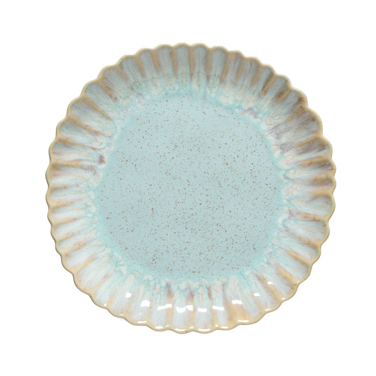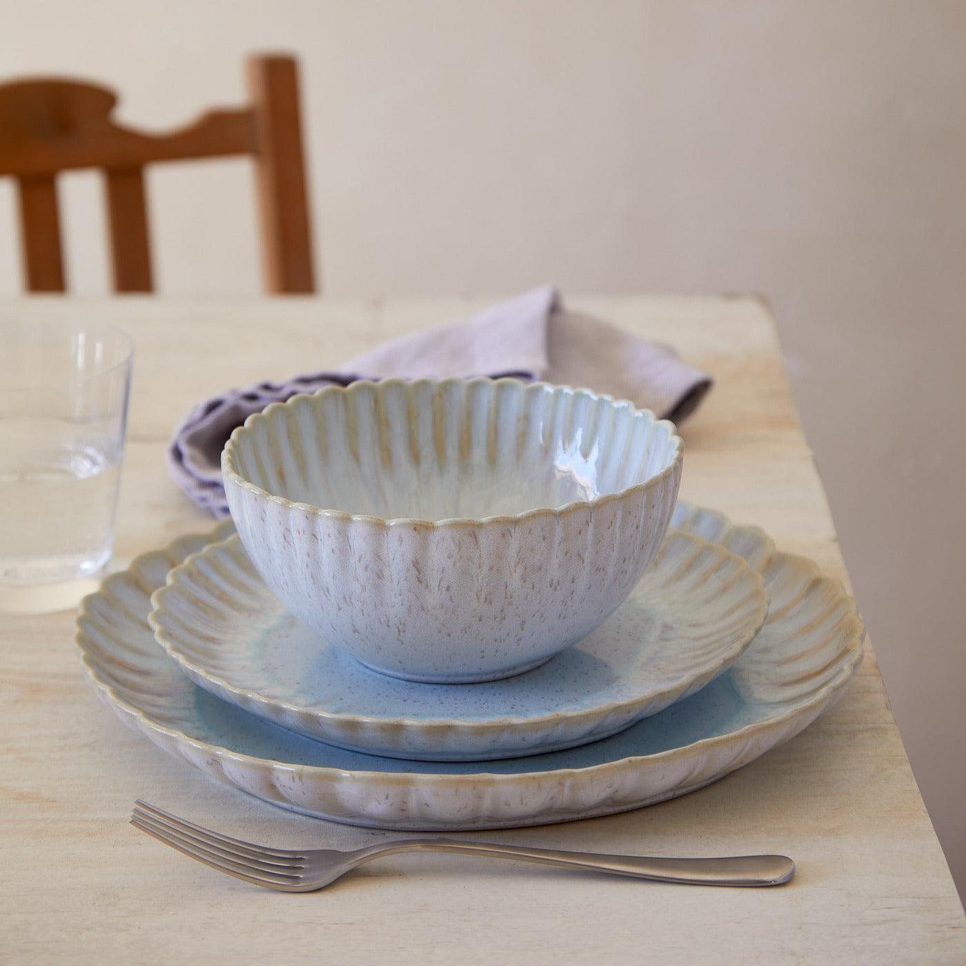 The Mallorca collection captures the natural landscape of the famous Mediterranean island, a haven of turquoise waters, soft golden sands, and impressive cliffs. Mallorca shares its DNA with the Eivissa collection, featuring reactive glazes of sand-beige and sea-blue patterns. Yet, its soft and scalloped edges suggest a more exquisite look. Combine both shapes for a casual and eclectic look.