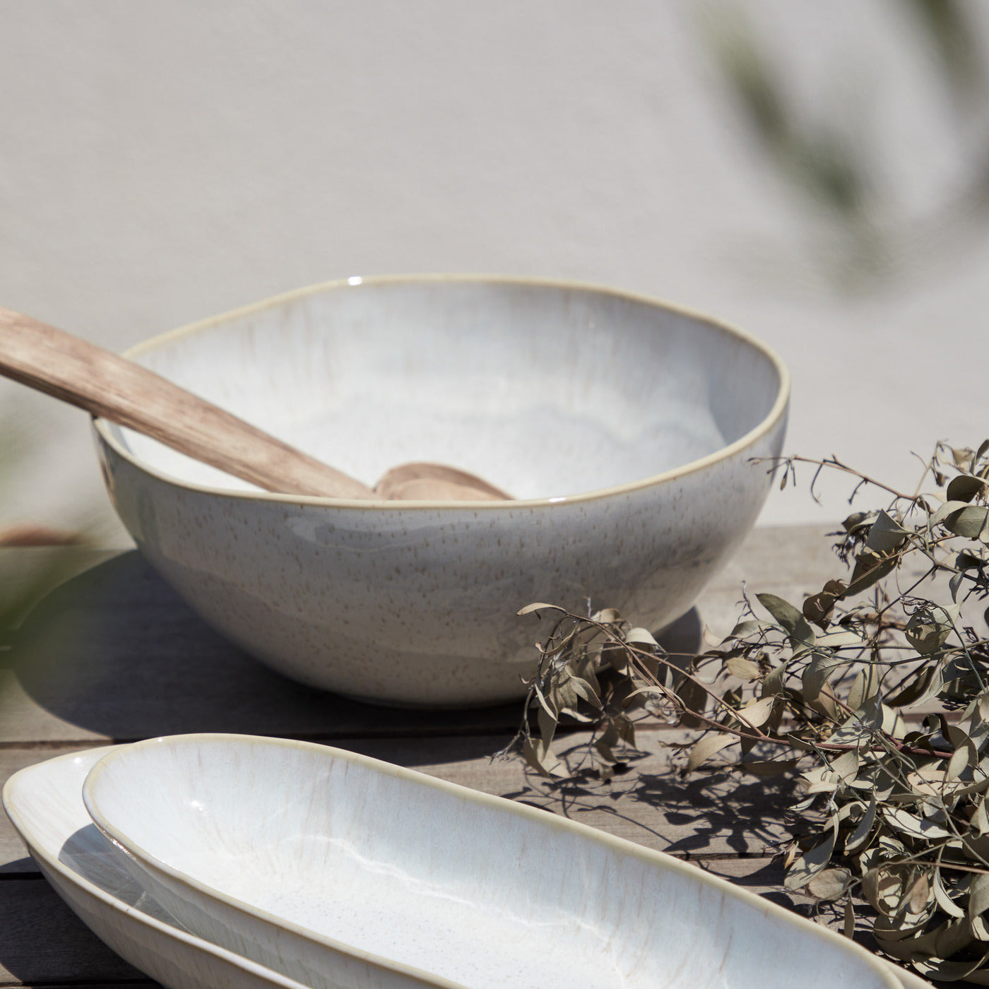 Discover Casafina's organic-shaped collection, Eivissa. The natural curves of the collection are enhanced by its artfully reactive glazes that create perfectly imperfect patterns of beige-sand and sea-blue on the interior. Eivissa showcases a striking interior finish, enhanced by a minimalistic white exterior. Organically-shaped and artfully glazed, no two pieces will ever look the same.