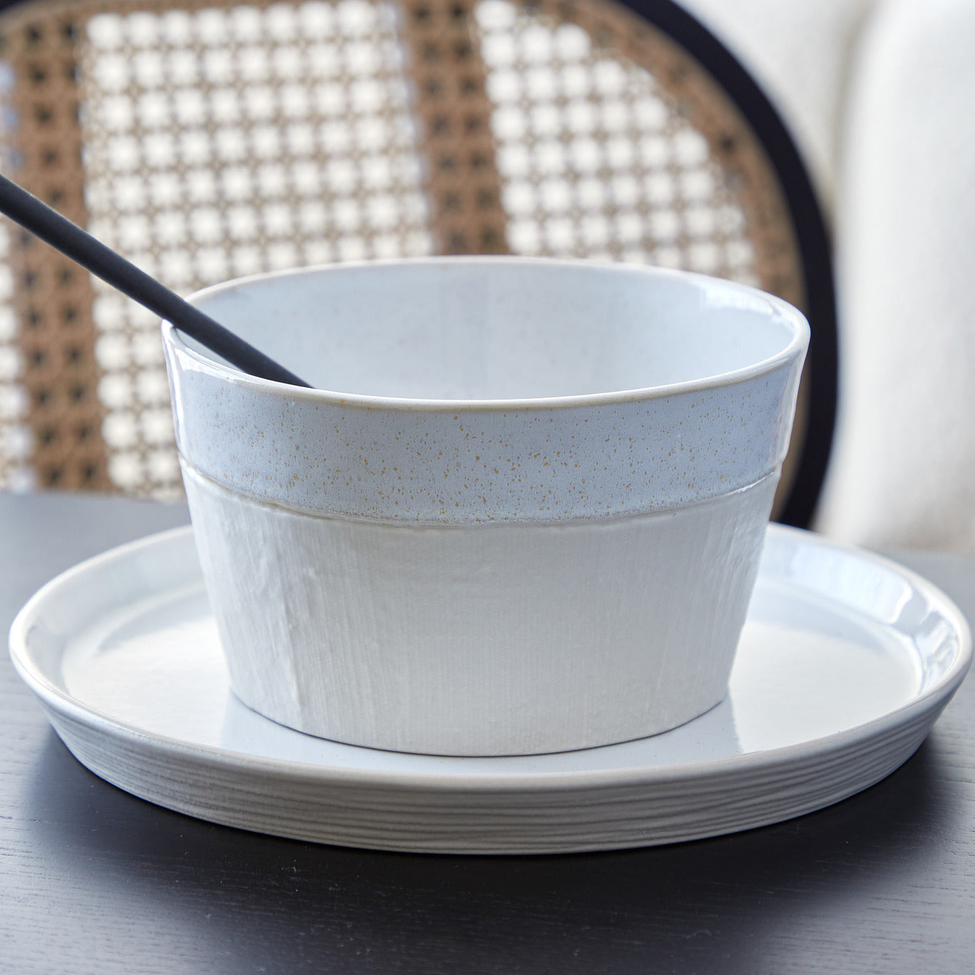 - Handcrafted pieces featuring two contrasting glazes and textured surfaces that elevate all our senses